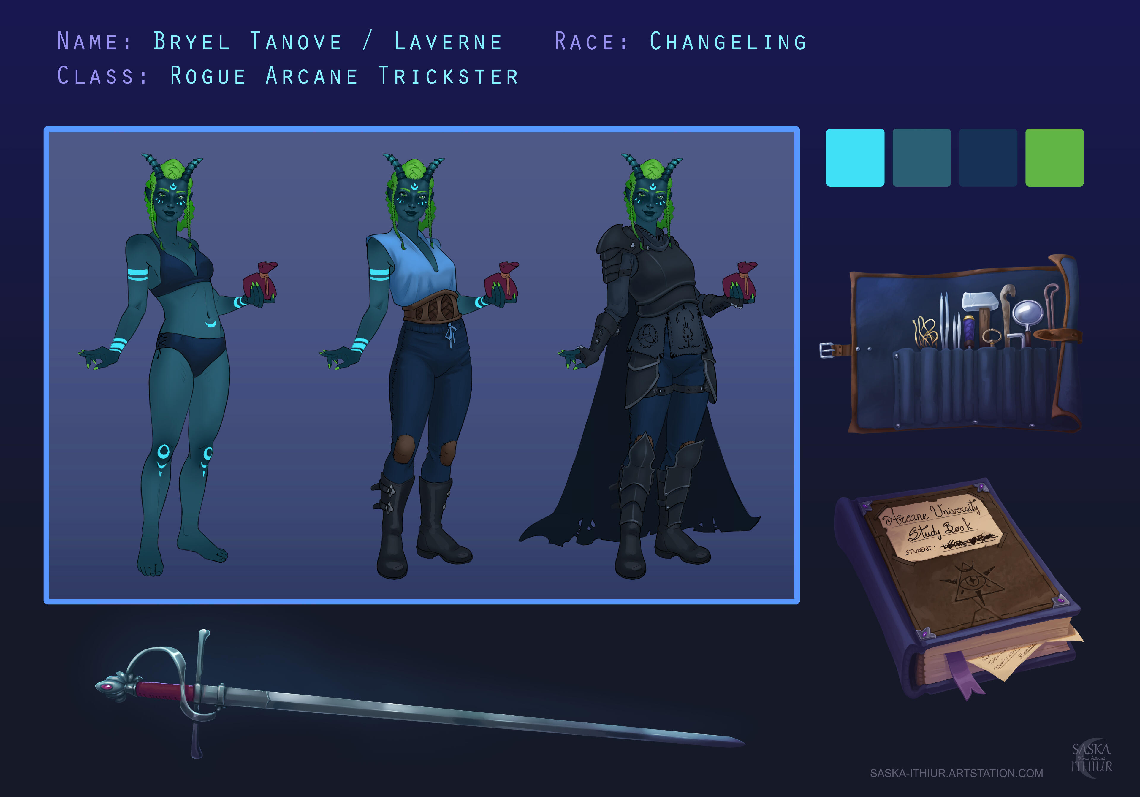 - 2x Character: sketch + flat color. Same pose different outfits